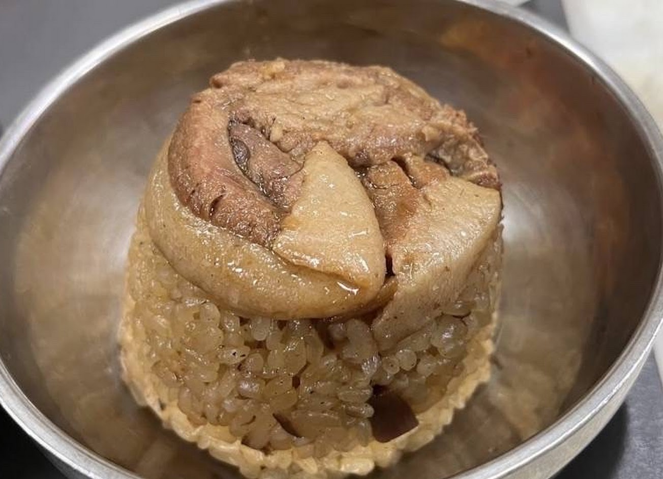 公司點了外送吃了看看,吃了只覺得像普通又黏又膩的油飯做成像筒仔米糕的形狀而已。