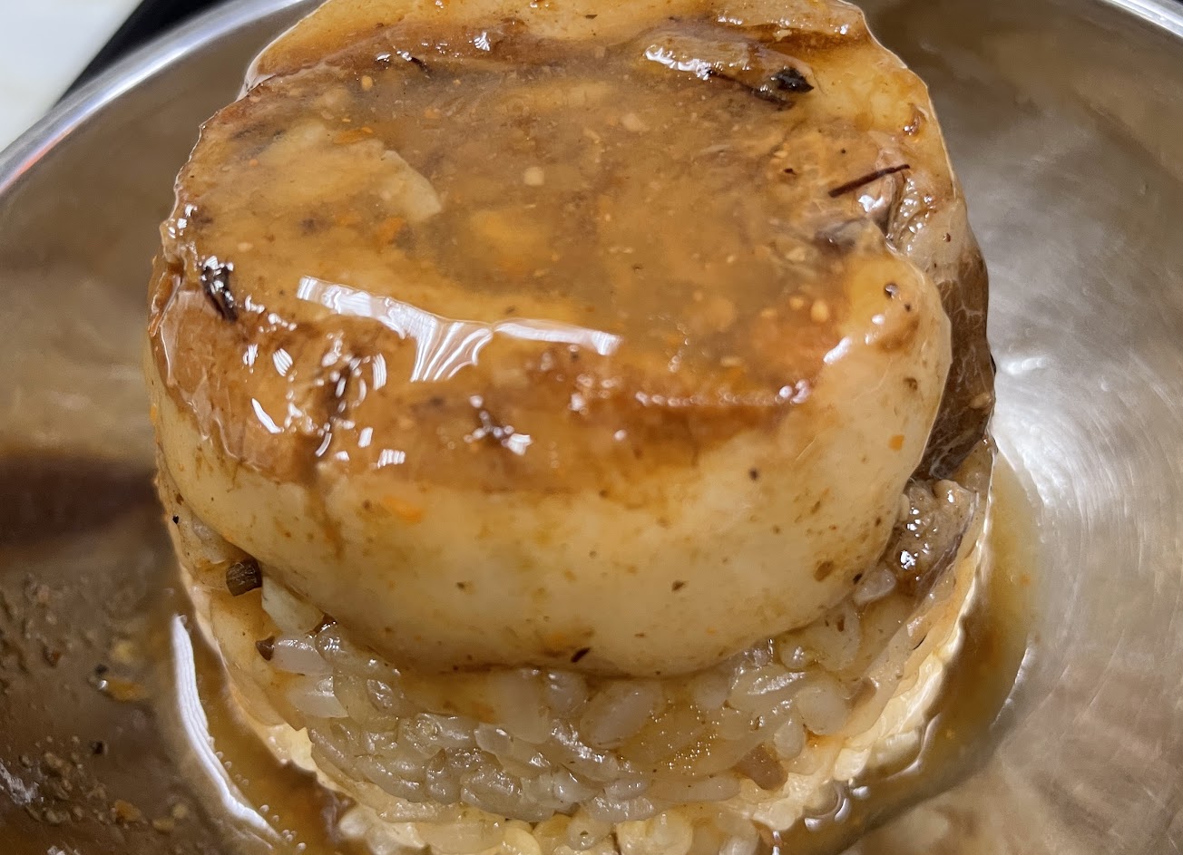 米糕肥肉的口感比瘦肉好 肉很少 米糕本身也很普通 甚至底部吃起來有點乾掉沒熟硬硬的 覺得是贏在醬很不錯吃