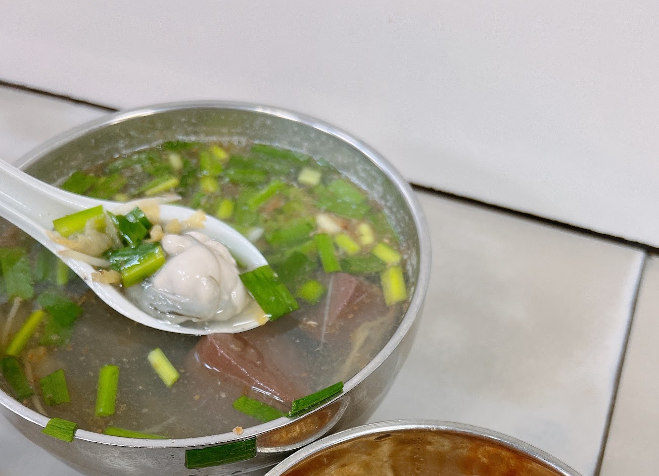 蚵仔豬血湯也蠻值得推薦,蚵仔大粒飽滿, 豬血吃的出鮮度,撒上整碗的韭菜,這絕對是傳統古早味的前段班。