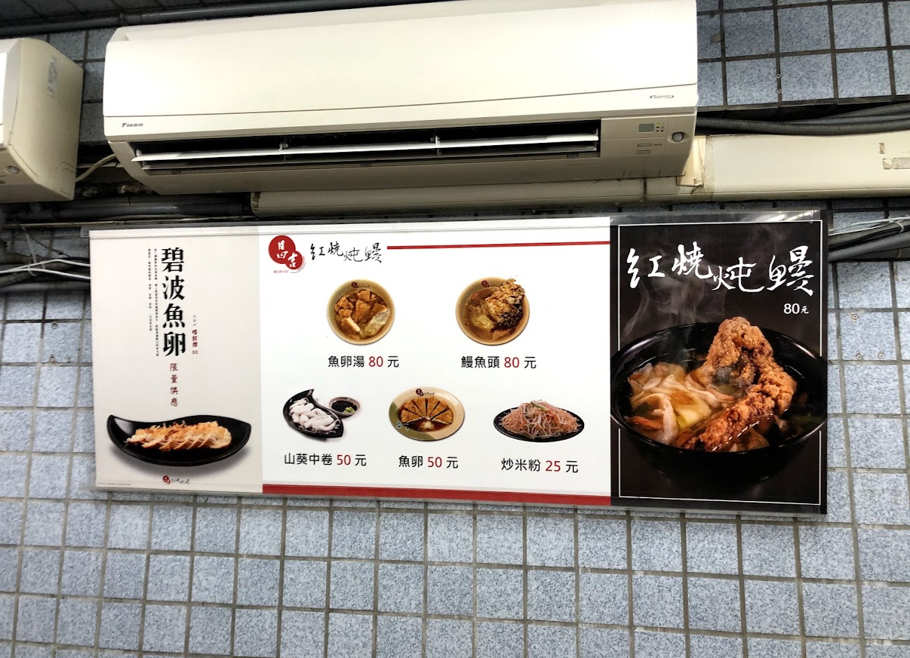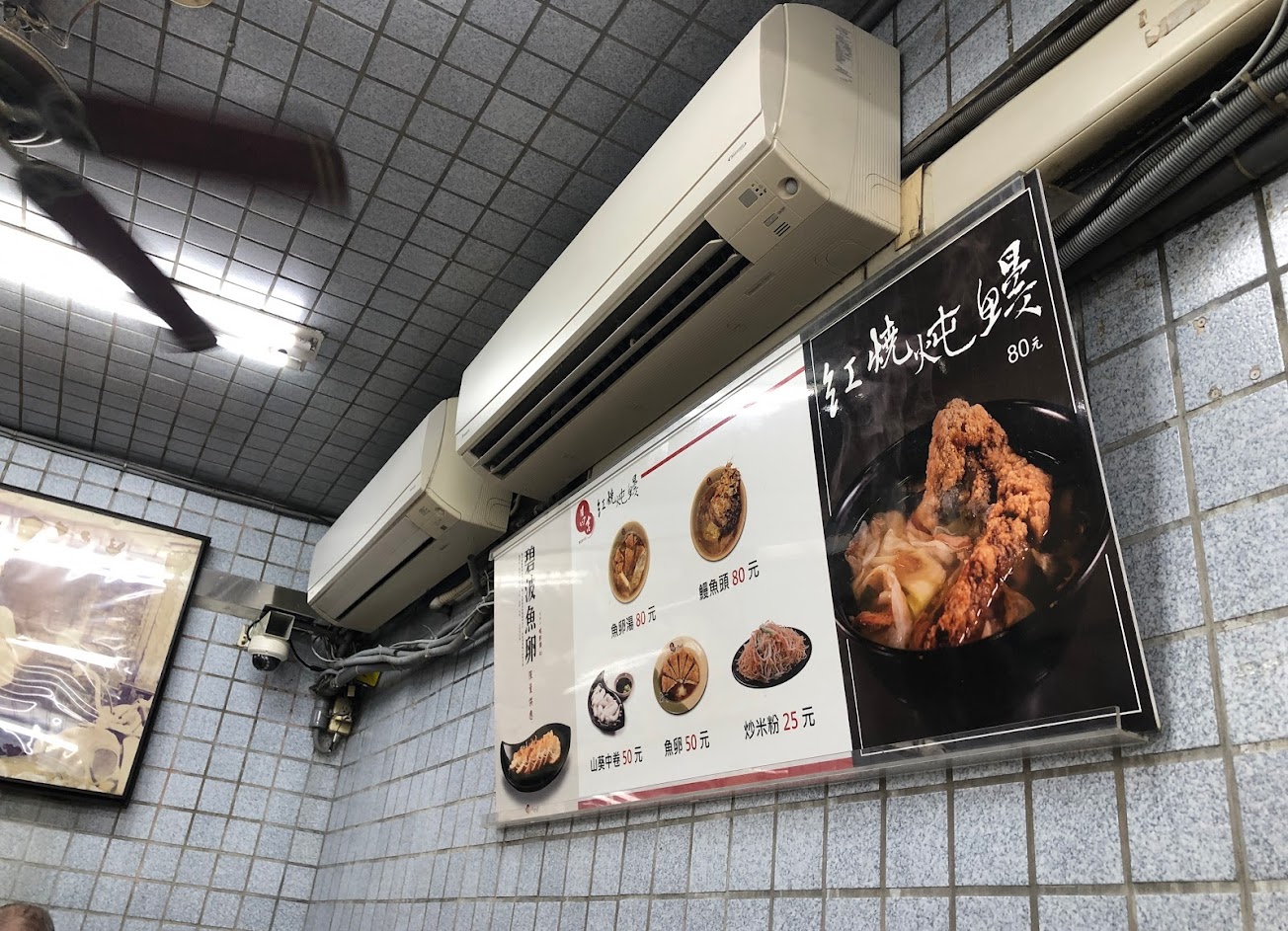 己經營超過一甲子的老店,老味道,一碗紅燒鰻,一皿炒米粉,加一件魚蛋155元,鰻可選頭,中段,魚肚,魚尾。值得一試什麼是老味道!