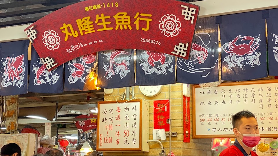 座落在市場內,有點微妙的日式生魚料理店家。品質不錯,但有點小貴。人潮洶湧。僅收現金。
