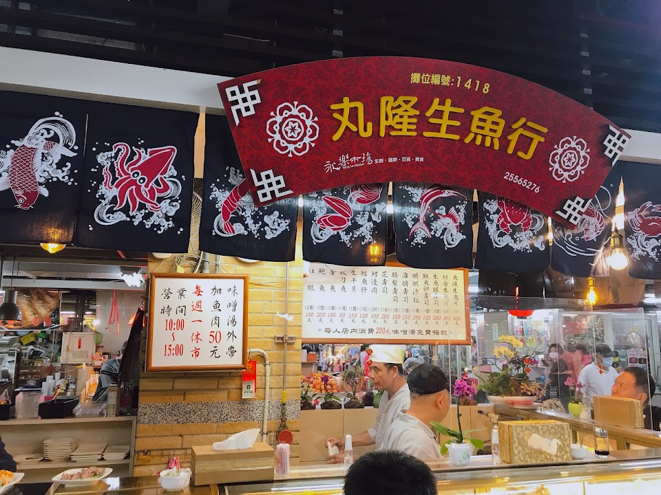 永樂市場排隊生魚片名店 內用的人龍直接排到市場門外 不想排也可以外帶然後坐在市場外面的椅子上吃 也是不錯的選擇 ??