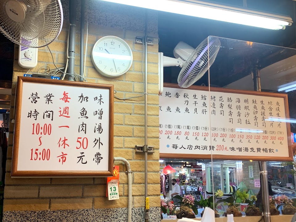 永樂市場內的排隊名店,用餐時間一位難求,料好實在、平價實惠,味噌湯讓客人免費自取。 這裡的招牌有綜合生魚片,內容有鮪魚、鮭魚、旗魚和紅紺等,滋味不錯,可惜油花較少。另外許多人點的佃煮香魚,醬香入味,魚肉軟嫩,還有飽滿的魚卵,值得推薦。 鱈魚肝口感綿密,可以試試;握壽司我們還點了鰭邊肉,算是比較清爽的一道料理。 味噌湯真的料好實在又好喝,我看許多人喝了二碗,老闆只要看料少了,就會立刻補上,完全是大放送的概念,假如是外帶湯品,一碗還要算50元,內用真的比較划算,只是要花時間排隊。另外點的花壽司根本吃不完,只能打包帶走。 店家的服務很好,生意興隆、老顧客也多,想要吃好料,記得要趁早。 服務 內用 餐點類型 午餐 平均每人消費金額 $200-400 餐點:5 服務:5 氣氛:4 建議的餐點 生魚片拼盤 味噌湯