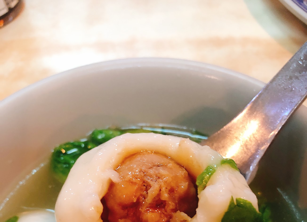 湯圓裡加了茼蒿就是對味!湯圓本身滿大顆的必須要分兩三口慢慢吃,内餡成現像丸子狀但能夠輕易咬下,肉餡調味是比較重一點的,餛飩本身也很好吃~