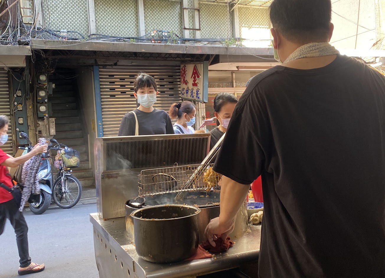 老闆在前面現桿麵皮現炸
