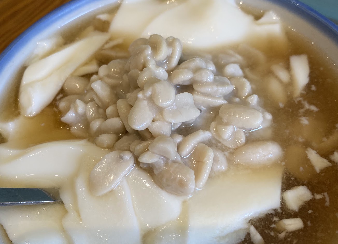 這是我吃過台北市最好吃的杏仁豆腐了? 豆腐的口感比較Q,搭配杏仁奶 杏仁豆花搭配的是糖水 以前的我是很不喜歡杏仁的刺鼻味 後來知道有些是加化學物質 而這家的杏仁奶是吃得到顆粒的 完全真才實料,沒有刺鼻味,只有杏仁香 配料也很實在,每次去迪化街都要來一碗 今天搭配大燕麥好健康?