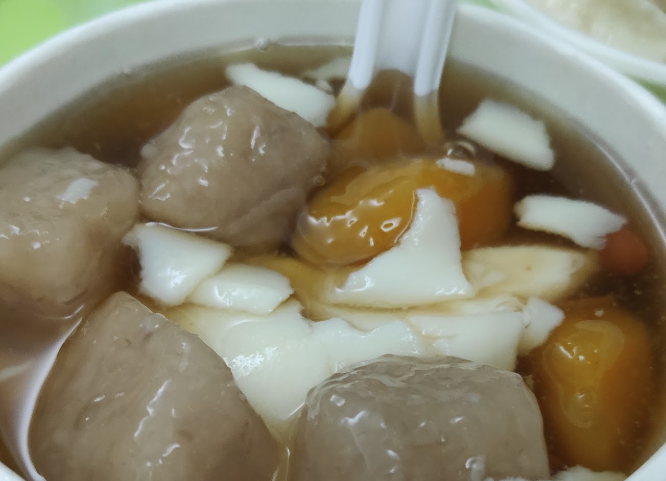 我點了三樣配料:粉粿、芋圓、杏仁凍