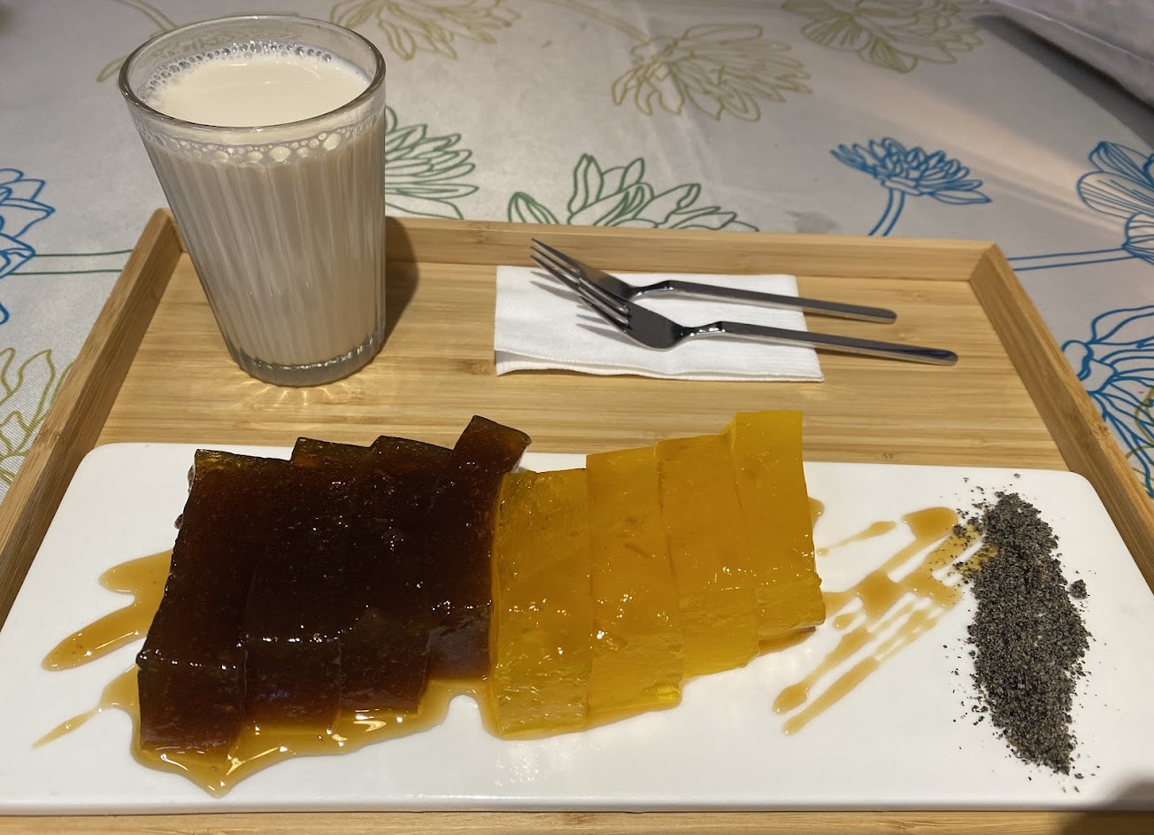 豆花品質很好,老闆也很友善。我們還品嚐了一些傳統的台灣果凍,老闆甚至還解釋了一些這種食物的歷史。
