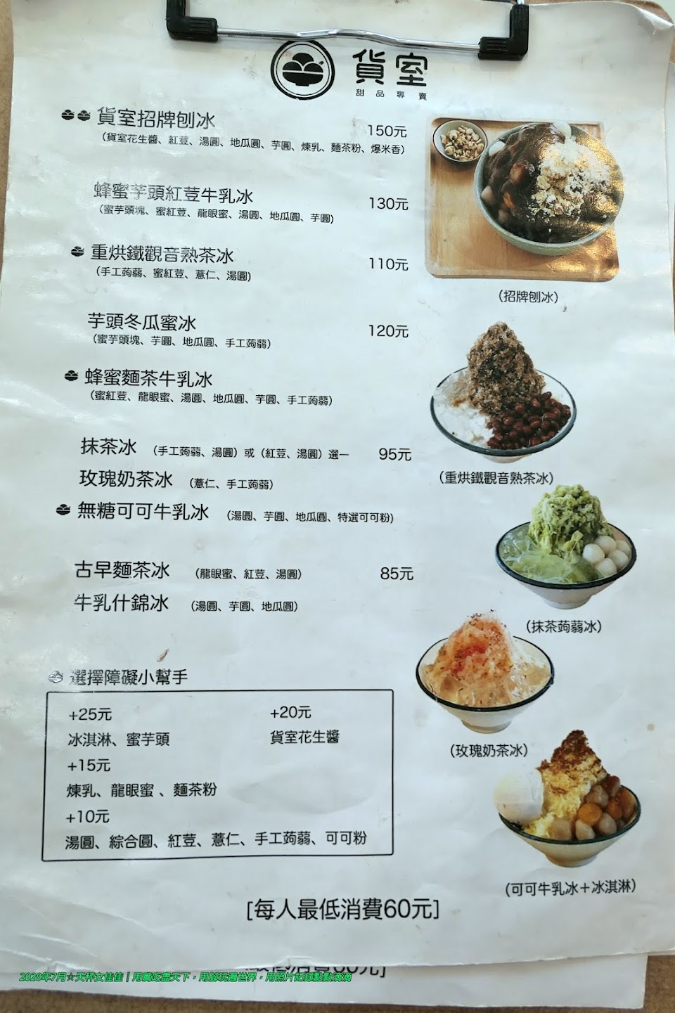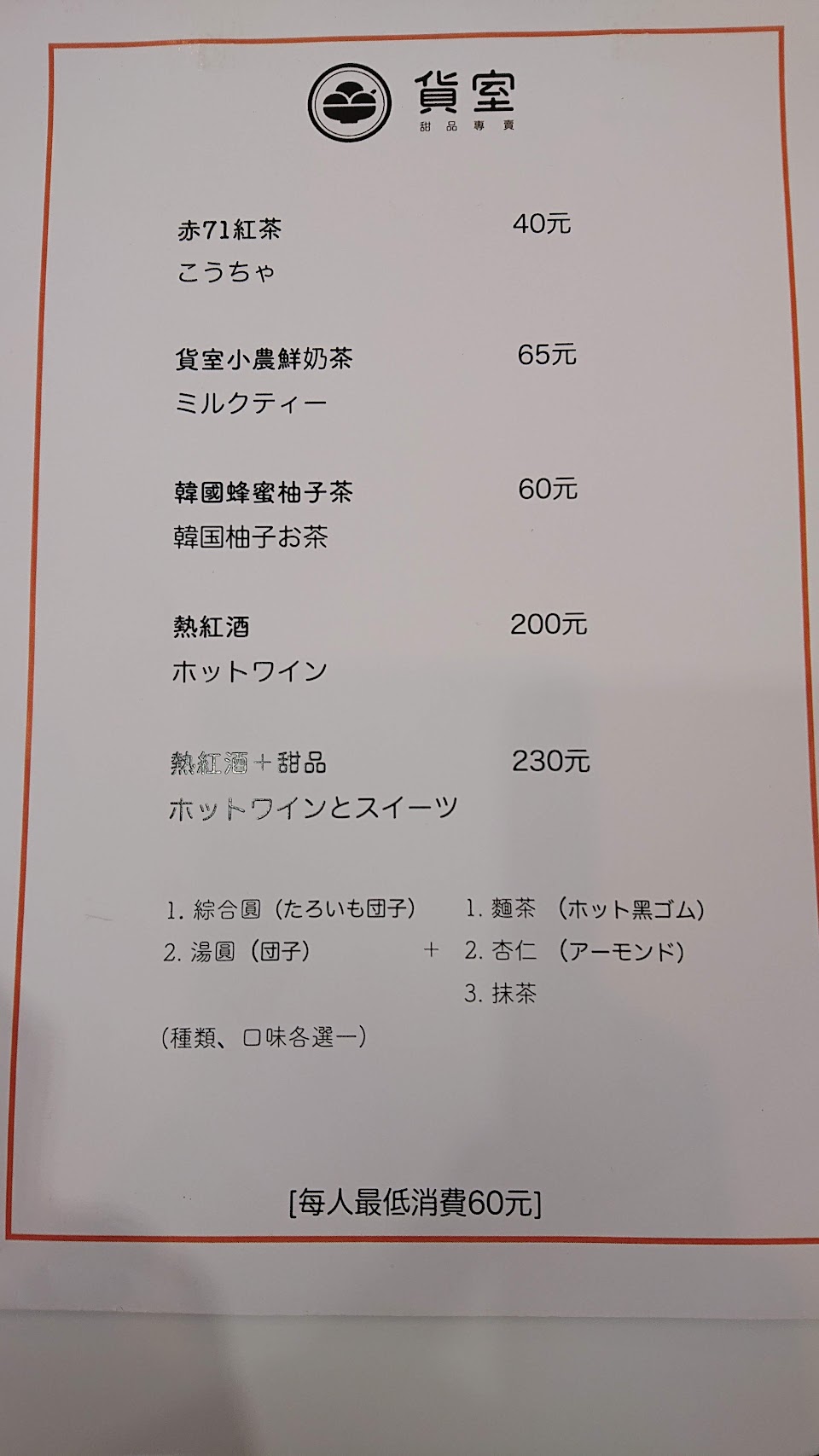 店家有低消. 任一品項.