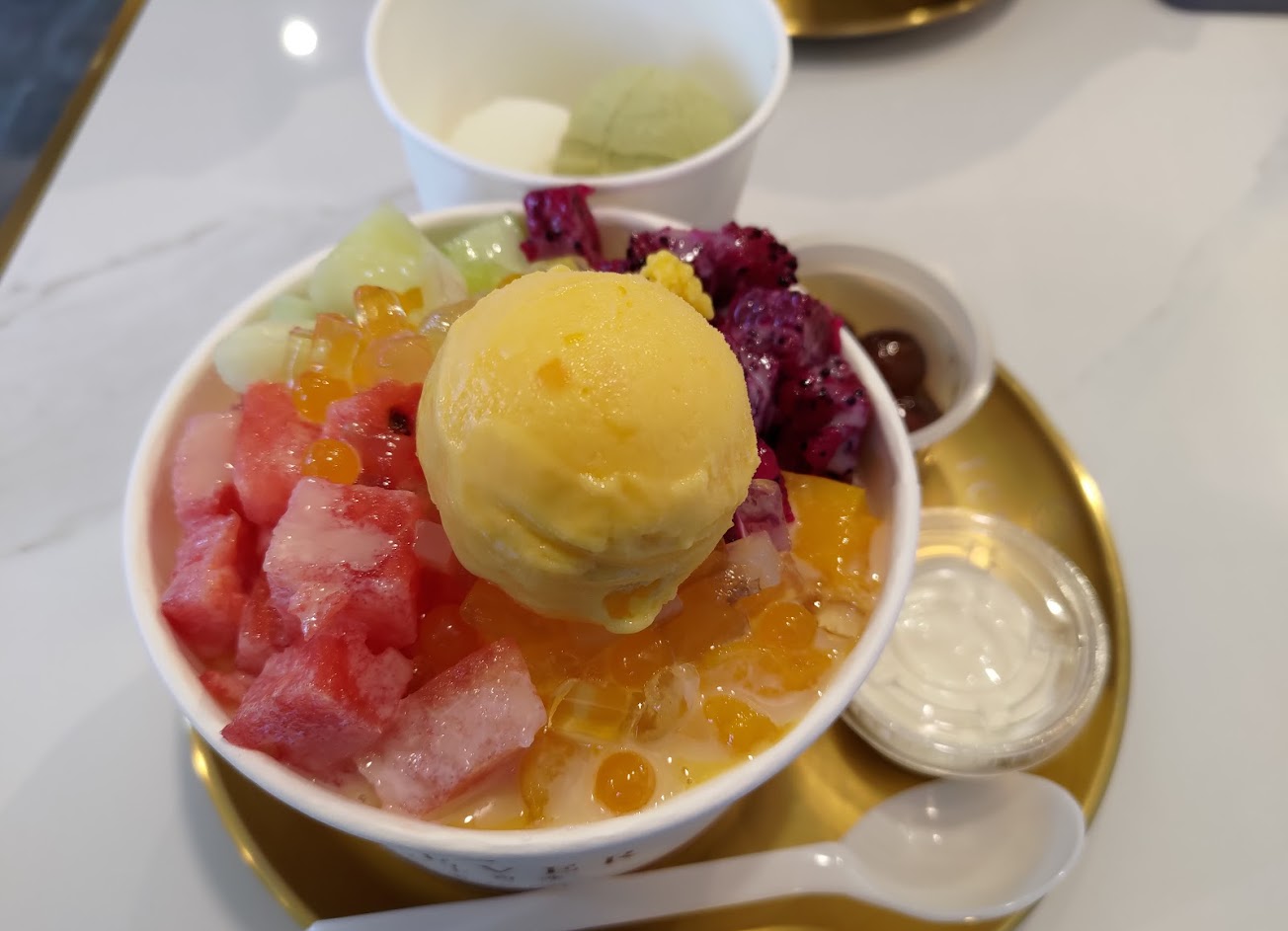 非常好吃的冰店! 第一次點餐還會送一球冰淇淋? 水果甜甜的,跟優格也很搭 冰是雪花冰不是普通的冰 …