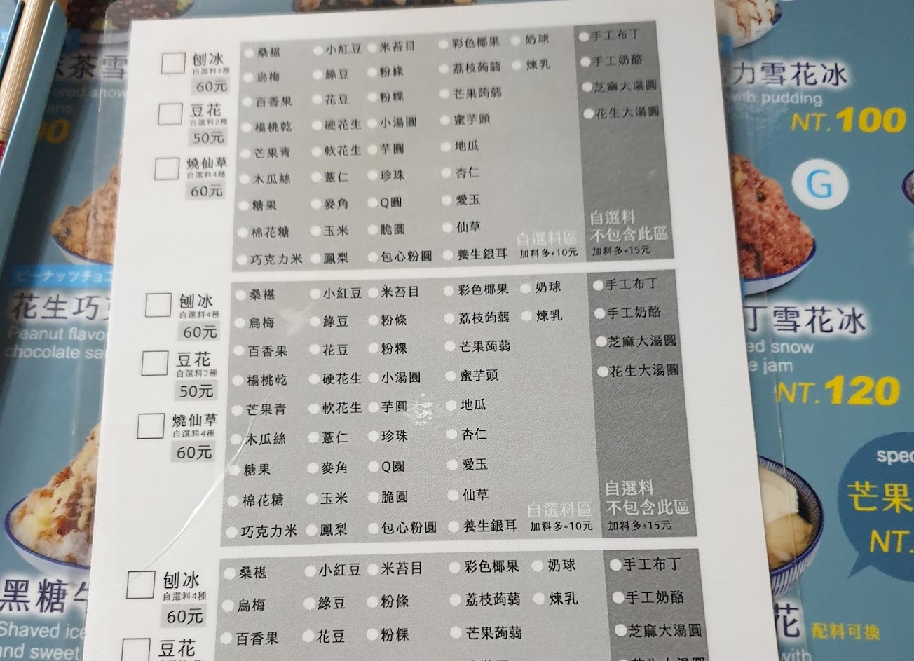 綜合花生湯可加料3種,但是花生不多而且不夠軟