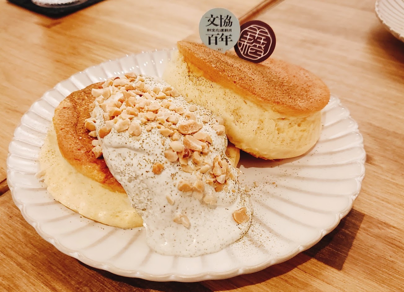 舒芙蕾鬆餅現場製作,口感蓬鬆濕潤,香氣層次豐富,與茶飲有絕佳的搭配,上桌後建議盡快享用,意猶未盡的美味。