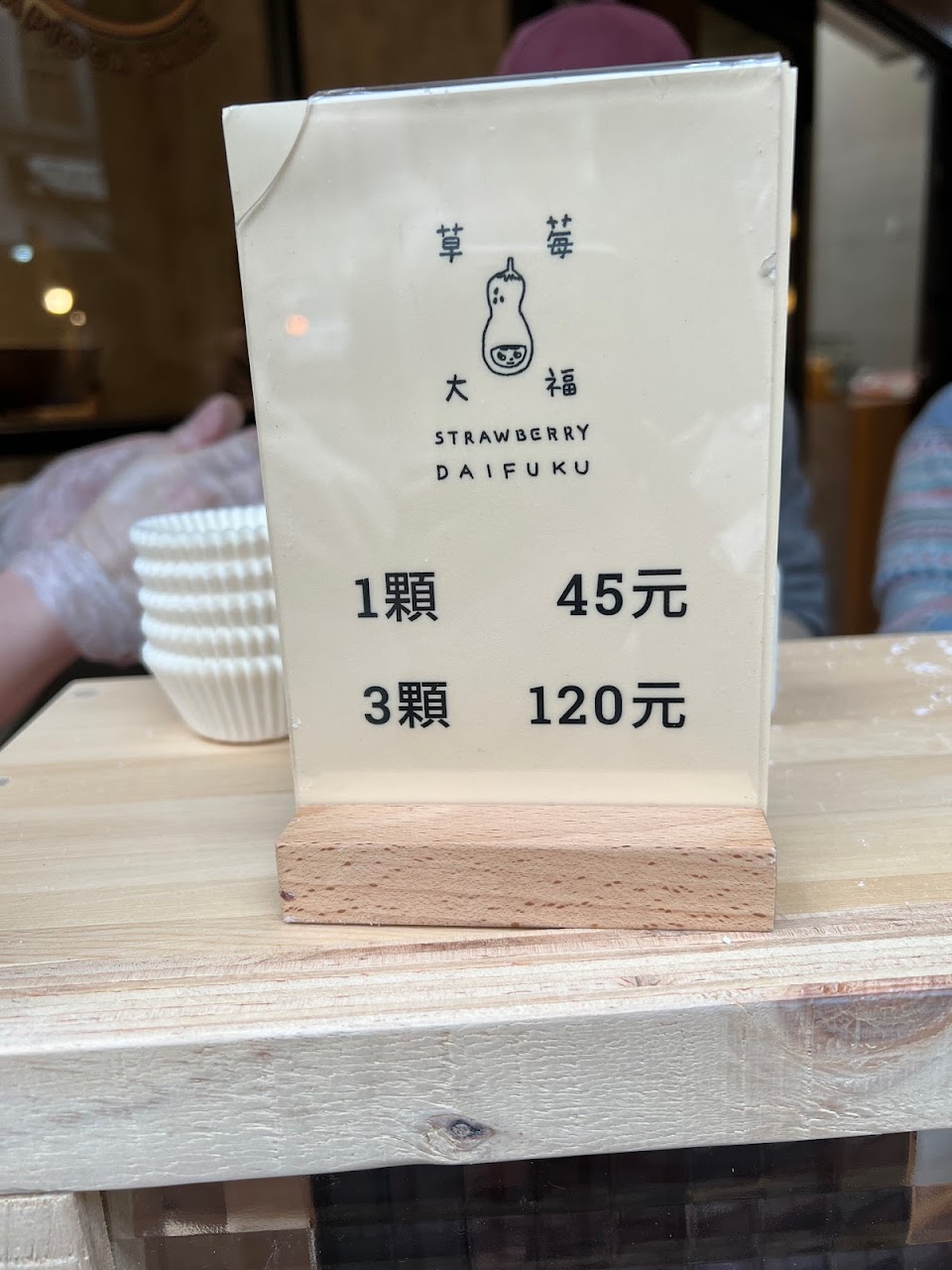 個人不喜歡日式甜點…因為口味都偏甜,經過這家小攤位的時候,看到很多人排隊!激起我的好奇心也跟著排隊,最終買了三顆草莓大福回家和家人分享,一共是$120 ,一口咬開大福!好大一顆草莓呀!配合綿密的紅豆沙!酸度和甜度配合得剛剛好…一點都不膩口!不知不覺,一口接一口,大推!比我想像的好吃