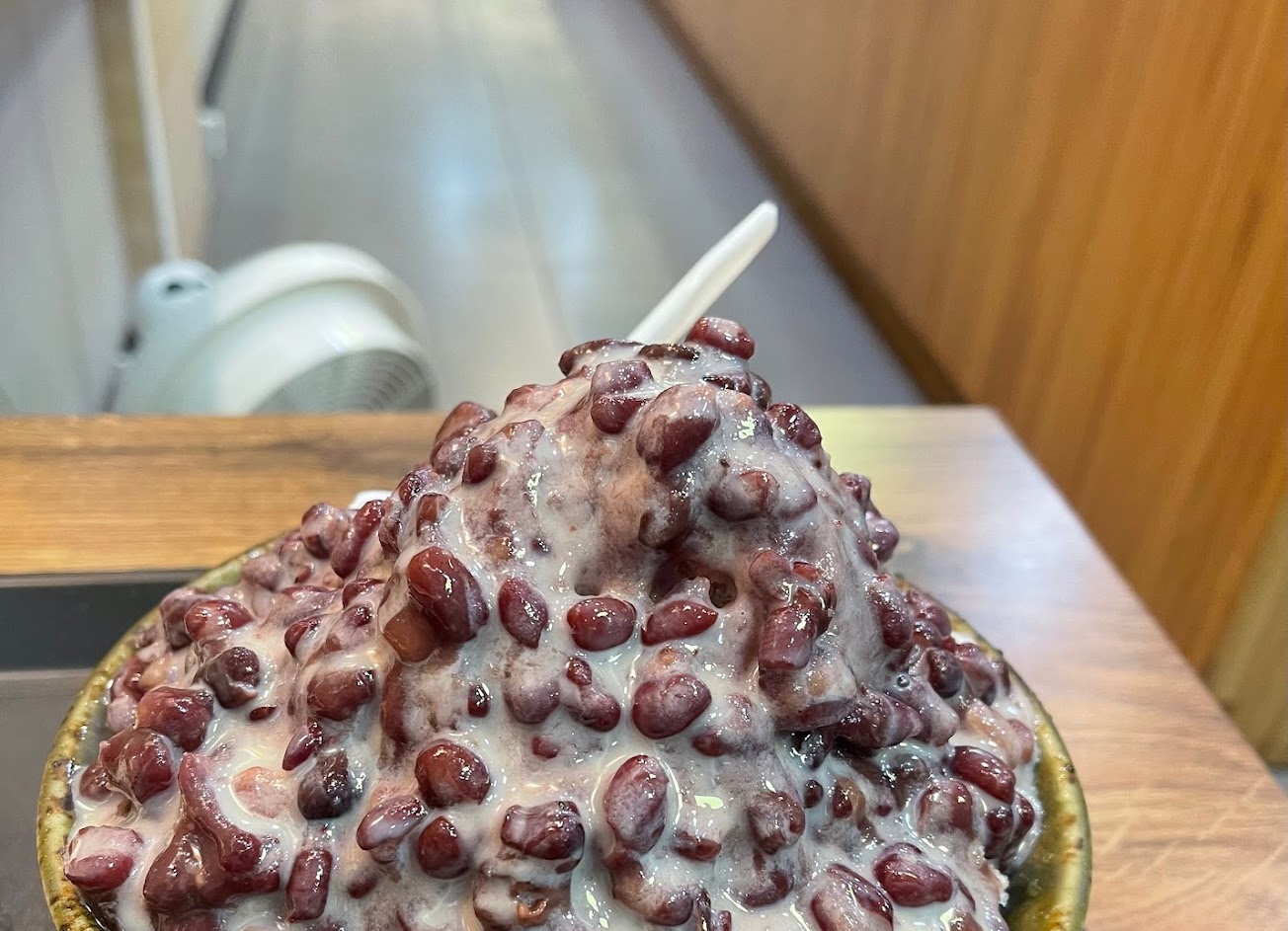 朋友點的是黑糖紅豆刨冰?,滿滿的紅豆看起來很無敵啊??不過朋友說實在是太甜了! …