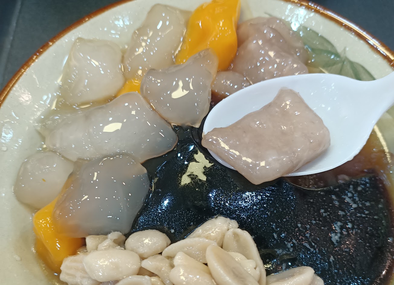 *芋圓-稍微不甜,但可能是太白粉放太多,口感有點像水晶餃,已經吃不出芋頭味