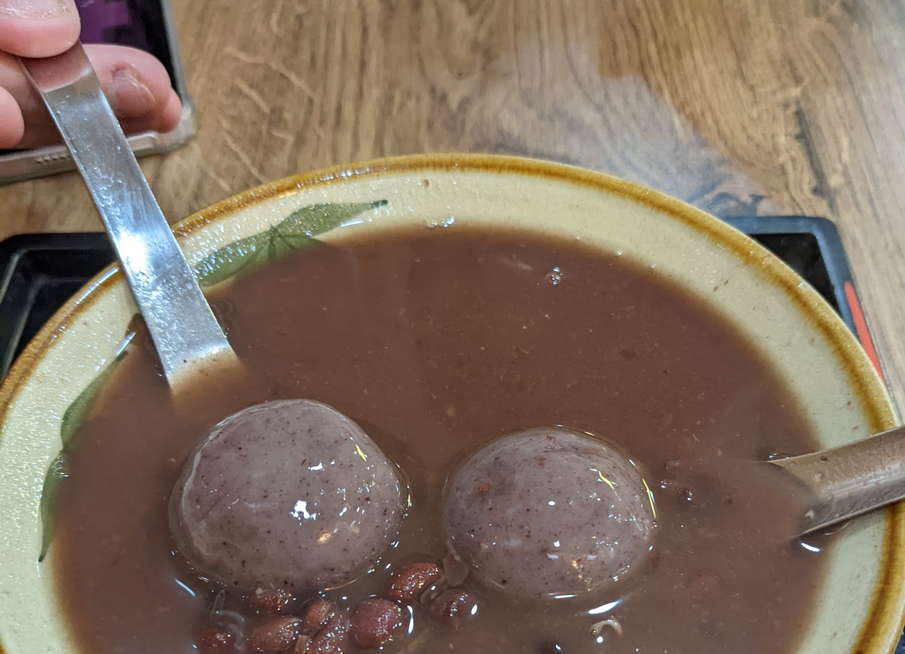 冬天天冷,來碗紅豆湯加芝麻湯圓,非常舒服。