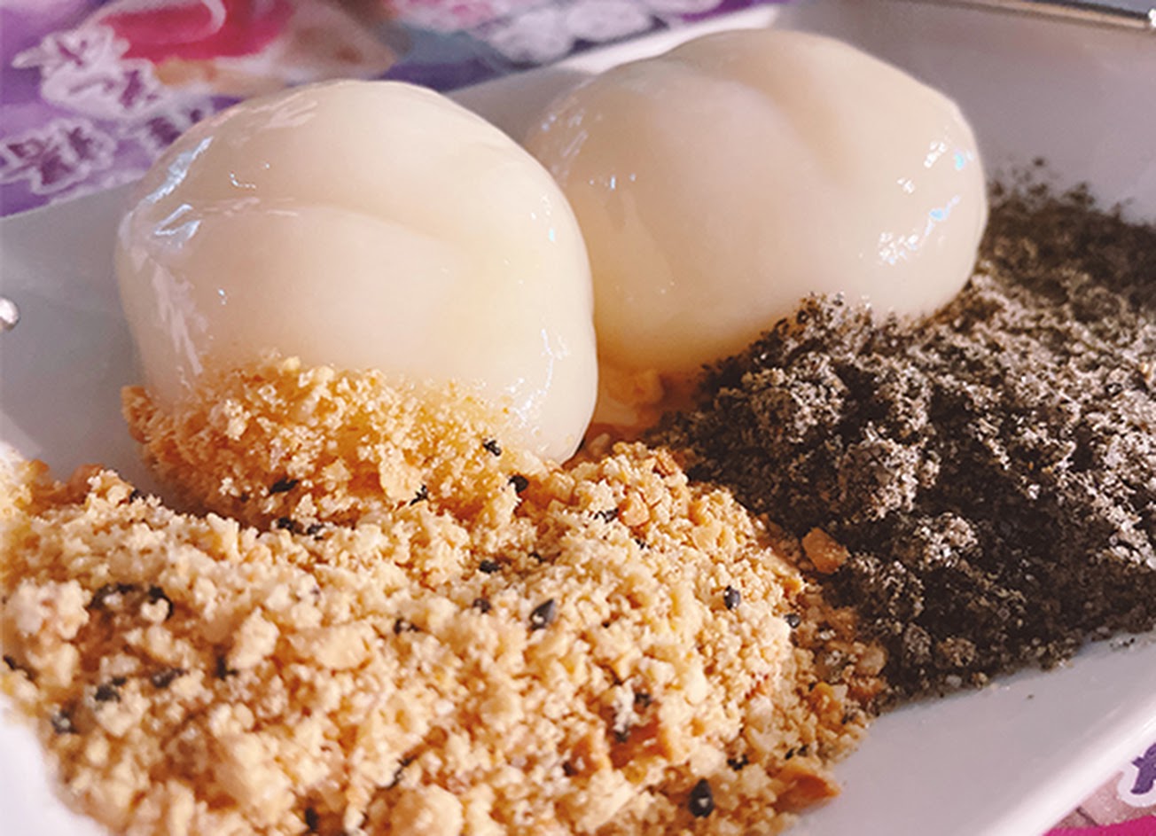 很好吃,麻糬加上芝麻粉、花生粉很香!
