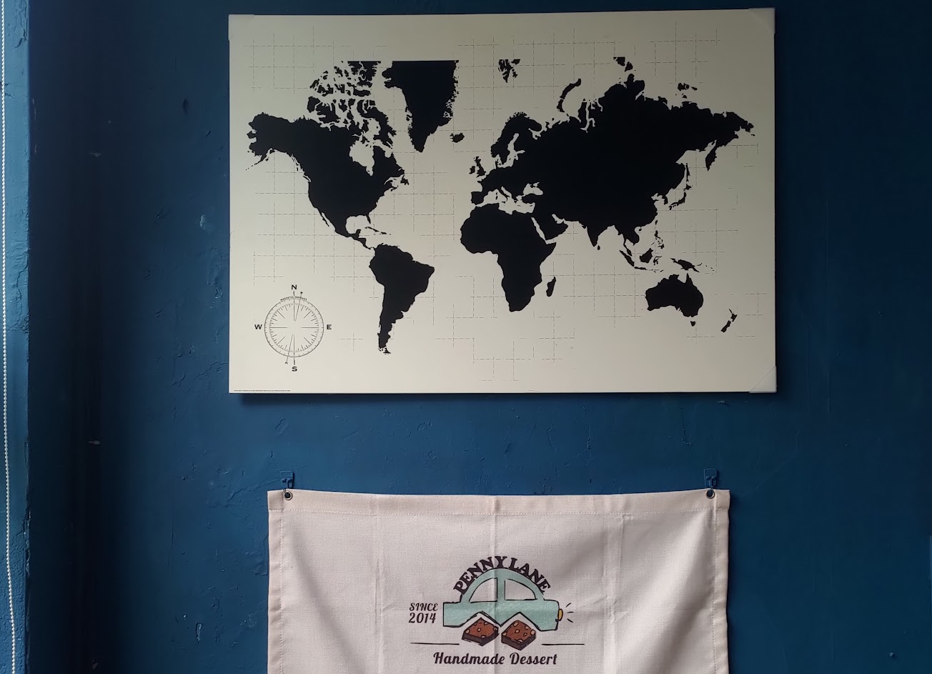 面對商旅客梯右手邊會看到地上有立著白色立牌,走入那條防火巷,再走上二樓,就是甜點店的位置,就地點而言是間神秘的小店。 店內的藍色很好看配上黃橘色的燈很好看。 這是間甜點工作室,一進去就能聞到奶油香,甜點的甜度都很剛好,抹茶類的味道很乾淨沒有雜味很適合喜歡抹茶的朋友前來品嚐。 所有品項的價位都沒有到很高,其他甜點也都值得一試。
