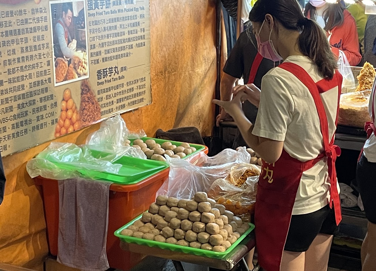 熱門熱門非常之熱門之超級熱門! 寧夏夜市裡頭,需要排隊的小吃,而且是大排長龍的小吃攤! 有時候在晚上09:30左右就賣完收攤,太晚去,攤位已經打烊收攤撤走,會讓你以為沒出來擺攤,要吃這一攤,得早一點來! 整顆大蛋黃,和肉鬆,一起被包在芋泥麵糰裡,再下去油鍋酥炸。 是小吃攤中,非常有特色又不會撞攤的美食!