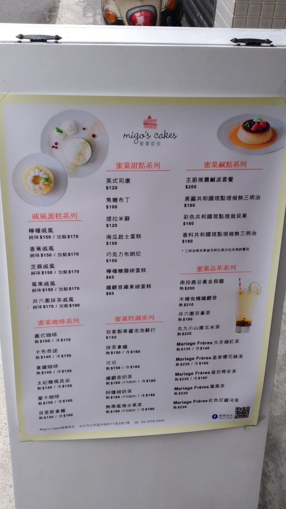 蜜菓拾伍的食材,不僅止於甜點用到的奶油、水果,就連咖啡豆及茶葉的選擇都很講究。戚風蛋糕的裝飾及飲料堅持現點現做,每次都覺得等待是值得的!