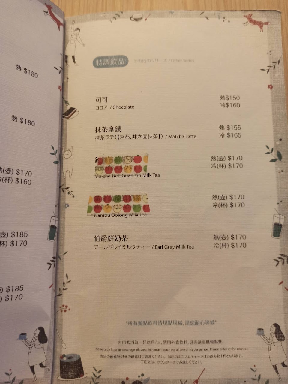 低消是一杯飲料 果粒茶170 可以續 不用加服務費