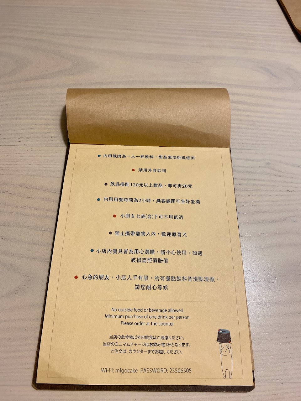 店家低銷1杯飲料/人,點甜點可抵飲料錢,環境也很寬敞,價格也不貴,推薦給大家。