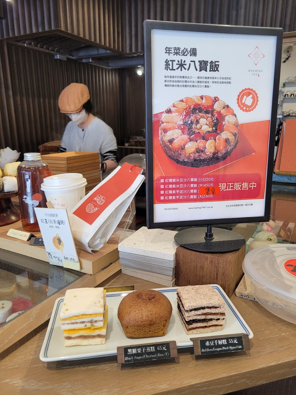 相比萬華合興八十八亭(已暫別熄燈),迪化街店內空間比較窄小,風格一樣偏日式,展示櫃可以看到好多口味的鬆糕。