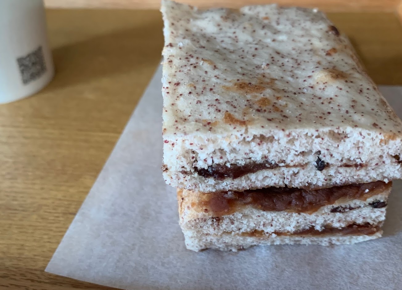 像是比較小巧可愛的紅豆麵包、不甜,不會想回購 但在街上喝一小杯茶,吃著這樣的糕點,很有氛圍就是了