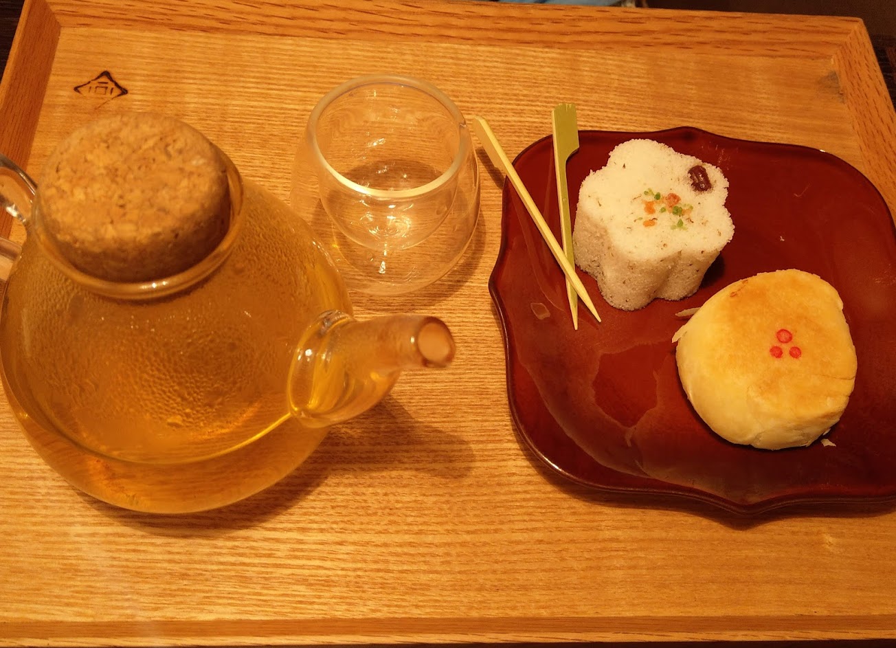 有文創加持,但小點心吃起來普通,附的茶不錯喝。只能端著小盤子站著吃,或運氣好搶到門口唯一的條凳一角,純吃氣氛的。