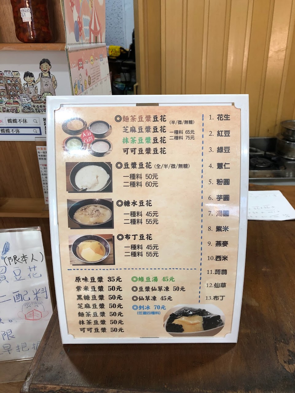 豆花很好吃,不像外面有些店的豆花不是很硬要不然就是吃起來像果凍,很推豆漿豆花,和豆漿仙草凍,真的很好吃? …