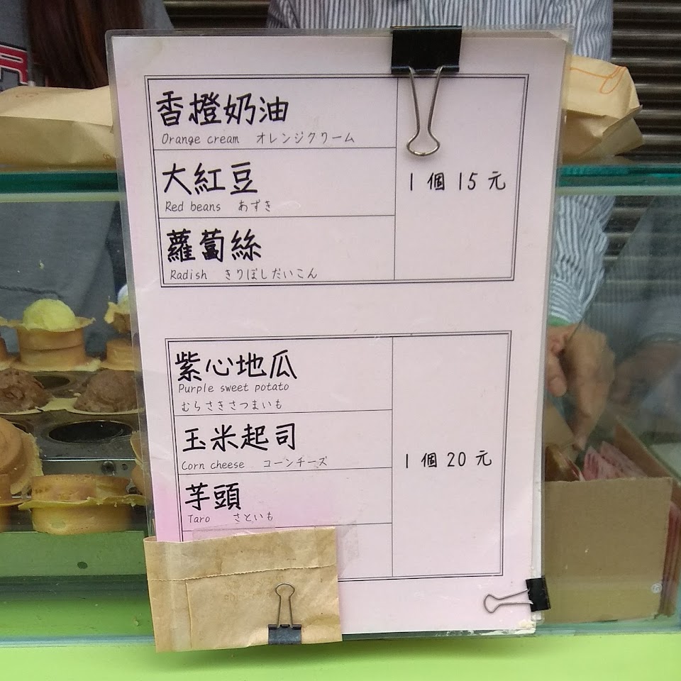 這是其中一款紅豆餅,如果你想嘗試傳統的台灣甜品,完全天然的餡料,不加糖,你應該試試這個!!每件只需 15-20 新台幣。 有玉米芝士,紫薯?,芋頭,奶油等。 我沒見過很多商店賣紫薯餡所以我覺得,值得一試!!