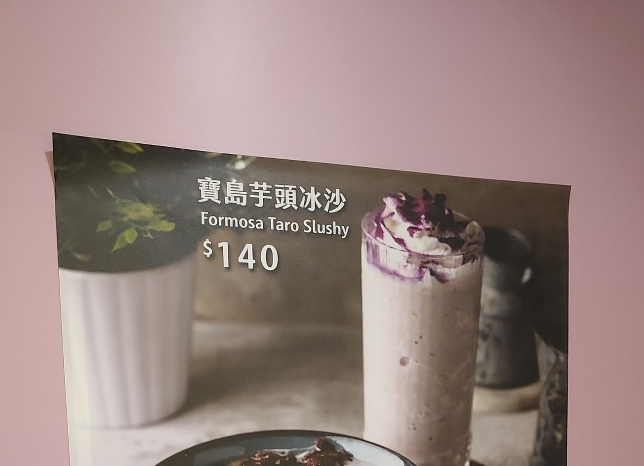 位於寧夏夜市中的TARO TARO是一間有著法鬥招牌的電話店,與喧囂的寧夏夜市相比,店內提供了一個休息與僻靜的空間。 內用一人低消80元,豆花偏貴,約在130上下,但份量確實蠻大的(可以當作晚餐的份量…)。 這次品嚐芋頭牛奶芋圓豆花(120元/份)+珍珠(10元/份)、杏仁奶酪跟茶凍,芋頭牛奶芋圓豆花+珍珠中除了芋頭其他都蠻好吃的哈哈哈哈哈,芋圓跟珍珠很Q還有甜味但芋頭真的還好,喜歡杏仁的朋友可以點杏仁奶酪,杏仁味很重,但口感像奶酪,蠻特別的,茶凍的話是點餐贈送的,很香,也不錯,如果寧夏夜市逛累了,可以來此休息。