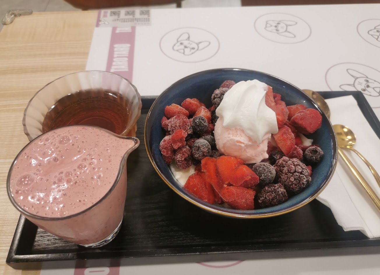 環境乾淨明亮,野莓豆花很特別~旁邊的野莓牛奶超讚❤️? …