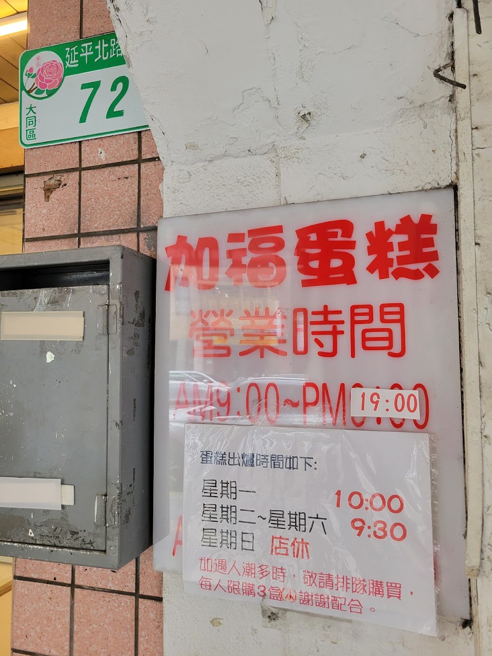 2023/06/13 am11:45 好不容易花了40分車程到達店家門口,眼看4,5位民眾在門口排隊,我便又花了10分鐘時間找停車位停車,中午12:05才步行到達店家門口,發現門口已無人排隊,趕緊進入且站在櫃台前,此時櫃檯前有一位小姐在掃地我便靜靜的在那等候約40秒,過沒多就大門又進來一位中年男子高喊著還有沒有蛋糕,店家答道要幾盒,然後把我眼前的三盒蛋糕直接給了沒排隊,又後來居上的買者,我直接傻眼。馬上跟店家反映,我都在櫃檯前站了一會兒,沒人理我,還賣給後來的人。店家完全不解釋不說明不理會的態度。然後說等下一批要中午過後,我只好退而求其次,希望先付錢,再來取貨。店家非常理直氣壯地回說,再來還是要重新排隊。 當下我懷疑人生了。我排隊,我先付錢,我盡量配合店家。可加福真的生意好到不缺這麼一個消費者。 想不到當今世道-不講道理,就連一般買賣也不通情理,總之(千錯萬錯,都是別人的錯!),這整件事情光白白的浪費時間不說,來此消費還要看-加福奇士蛋糕店家的臉色,不! 這一切不合符情理的,光別說價錢,花錢還要看老闆臉色,想想我只要不去消費這一切不就全免啦!!