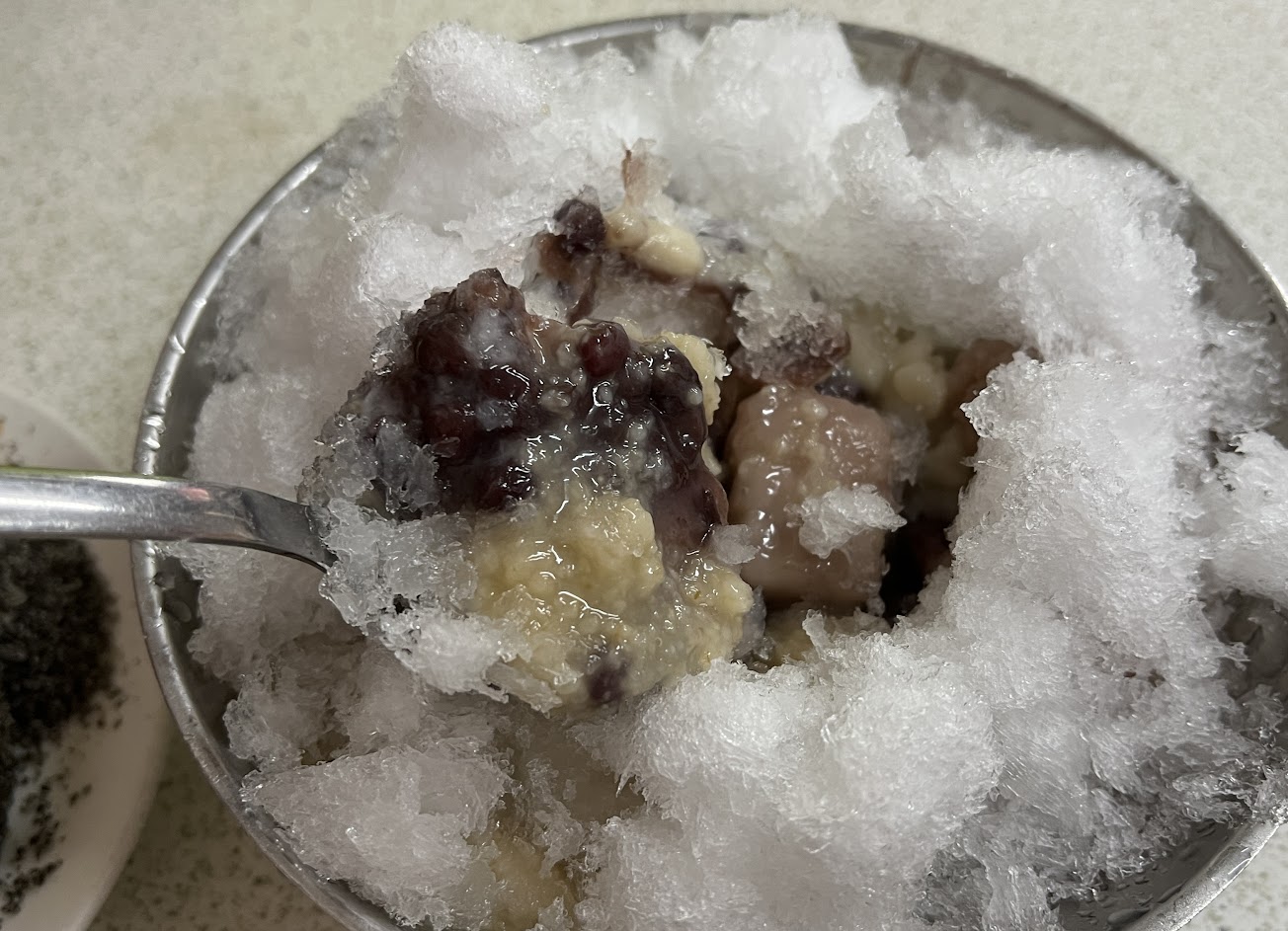 刨冰搭上煉乳和花生粉的口感,還有剛起鍋的熱麻糬真的口感非常特別也非常好吃,所以一口氣就吃了兩碗!