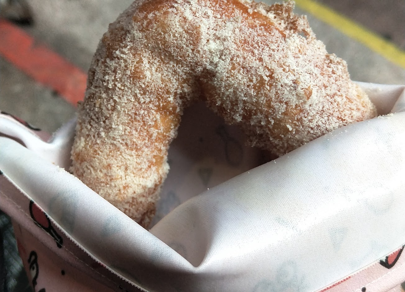 油炸火燙的麵糊裹上糖粉,酥脆口感跟甜味是絕配