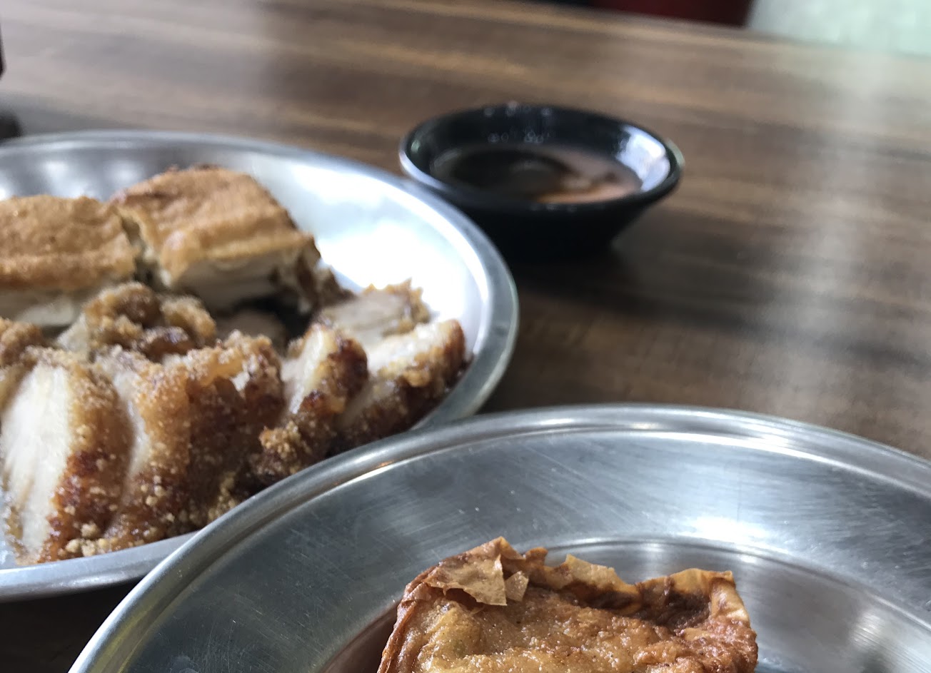 身為在地人,這家小店家原本是一對夫婦在大龍街的路邊攤,後來由兩男一女的年輕人接手,也搬到重慶北路上的店面,用餐環境變得乾淨了。吃過幾次,總覺得燒肉有點油餿味,但是總得給年輕人機會。這次總算過關了,炸物的裹粉似乎有改變,燒肉跟蚵仔炸都蠻美味,肉粥也有不少肉塊,值得再來。