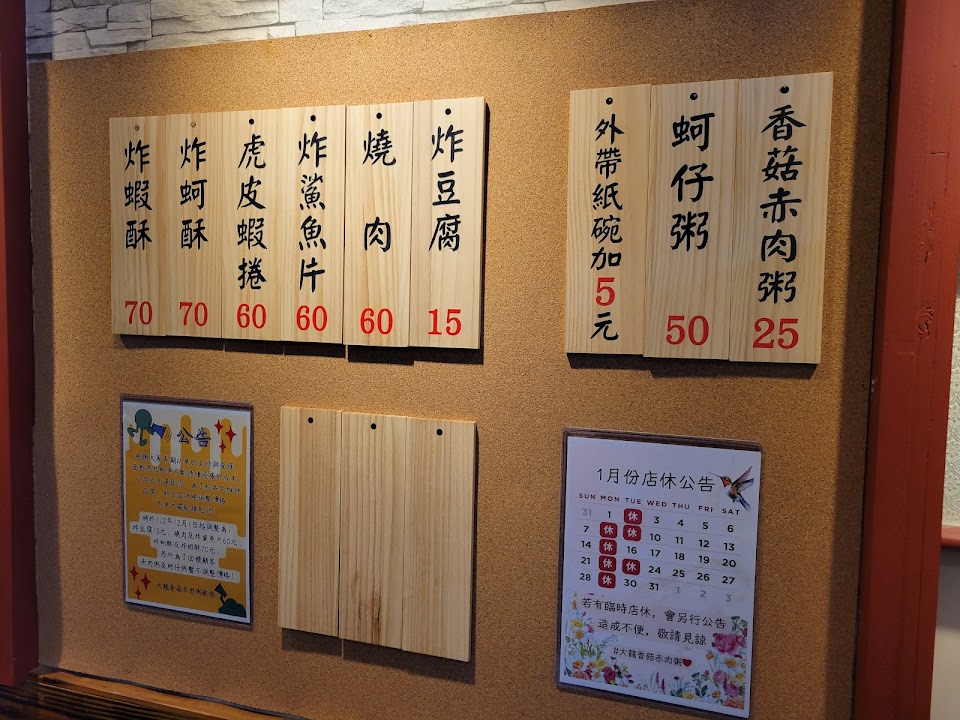 平常來吃都是點赤肉粥、炸蝦、蚵仔酥