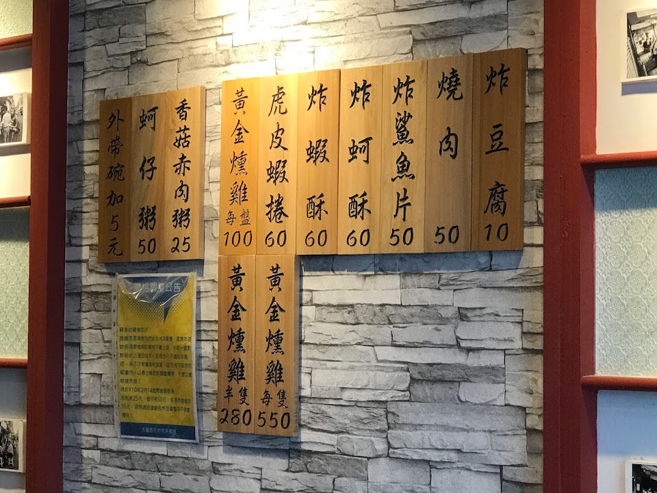 這是從大龍街頂攤之後,營業一段日子再搬來目前重慶北路開店的商家。 風味上比起原來大龍街老老闆稍微有點變動,衛生上則是改善很多。 鹹粥調味上和老闆的稍稍有些差異,我比較喜歡以前老老闆的調味。但是炸物則是現在好很多,尤其是油的品質改善很多。 如果豆腐能再炸稍微久一點會更好,雖然現在這樣已經不錯了。