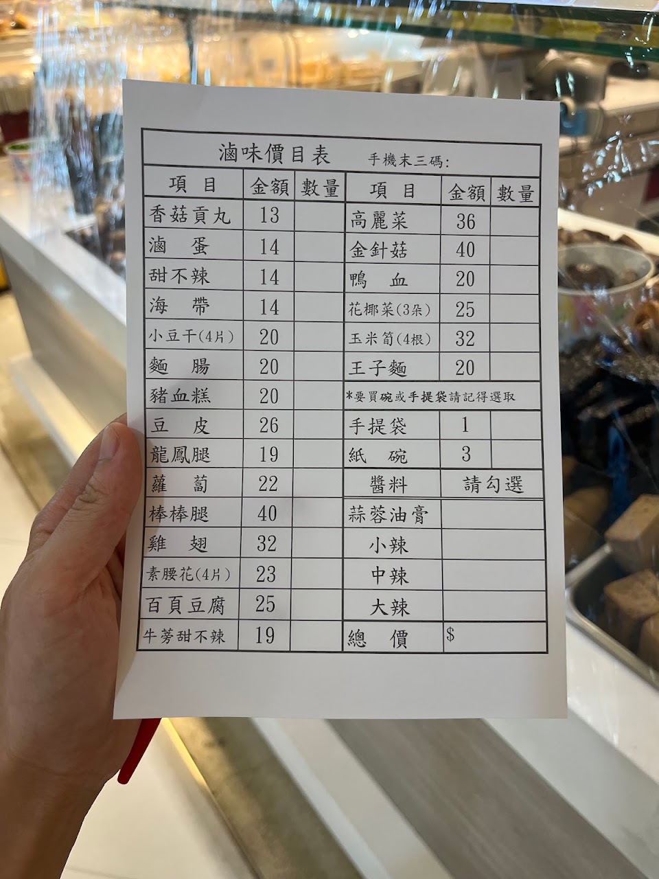 等到我的滷味好了,店員忘記加辣(沒加辣已蓋上蓋子了),我提醒她,提醒一次她沒有打開蓋子加辣,只好提醒二次