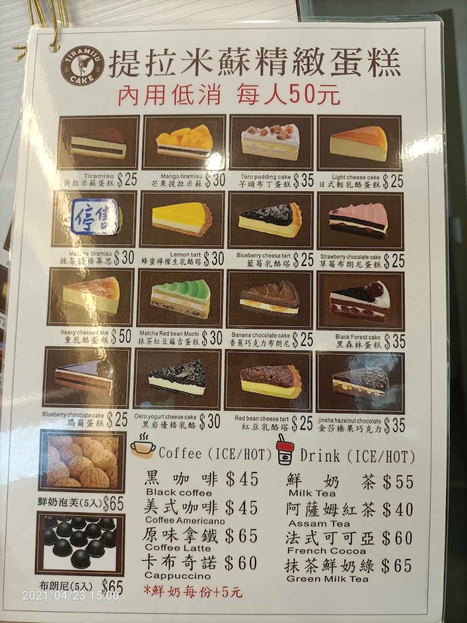 賣的提拉米蘇跟小蛋糕跟這個區域的價格比奇萊CP值非常高,無比便宜耶!!!!一個蛋糕大概三四十塊就可以吃到,有時候會有NG蛋糕還可以折5塊!!!蛋糕口感感覺還有一點點冰塊沙(可能剛從冰箱拿出來)並沒有那種放在空氣裏面太久的感覺。