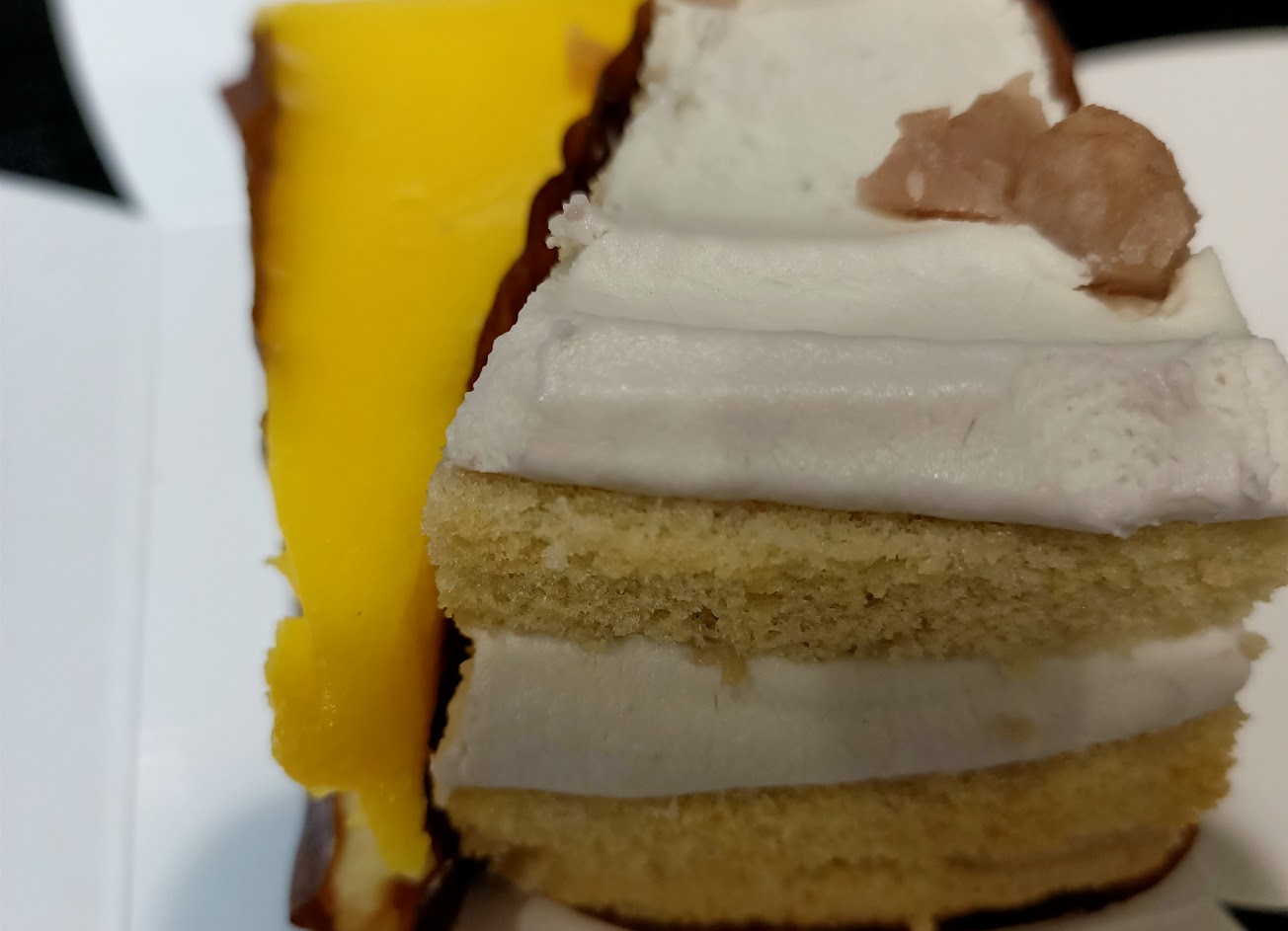 作為招牌,這個吃起來真的不怎麼樣,奶油裡面可以吃到一些小小沙沙的口感,我想這可能是因為經過冷凍產生的冰晶,也可見這家的蛋糕應該不是現做的,沙沙的口感扣了很多分,讓他整個口感不對了,不夠滑順融合,最後下面的餅乾也很薄,很碎。
