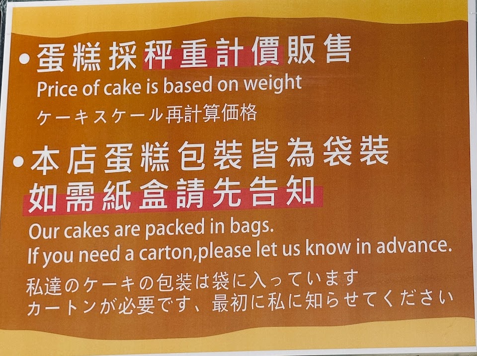 台灣卡斯特拉好吃,鬆軟可口。裁剪作品時,讓人眼前一亮的是工藝。原裝有大號的,不過這家店也賣小號的(小盒,55元)。從這個意義上說,這是一家連一個人都可以輕鬆購買的商店。