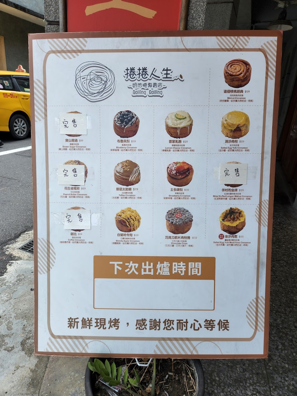 有吃過捲捲人生的肉桂捲,今天到迪化街想說吃一下,可是動線不太行,當然這也有臺灣人的素質問題,建議在地上或是櫃子上標一下「排隊順序1、2、3」之類的,畢竟店員只有1位雖然店面掛了小牌子畫分「點餐區」「結帳區」,但點餐區有的人會走來走去看(明明排隊定點站好就可以看),或是插進來看一看就走,又或插進來決定要吃就站著不動(=插隊),不停被人插隊心很累……所以就沒買了!