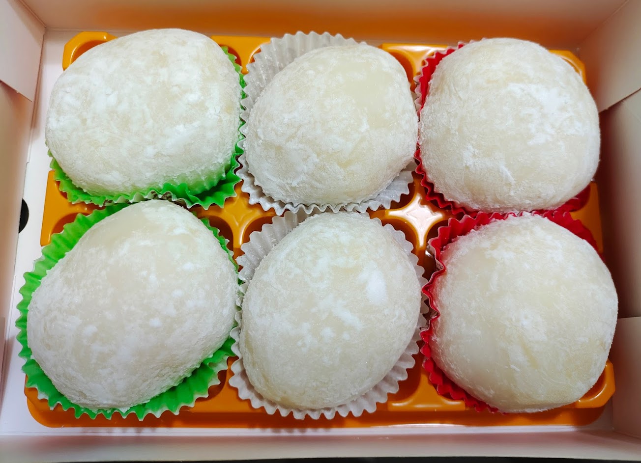 朋友送了一盒水果大福,本來以為大福只有草莓口味好吃,沒想到其它水果大福也好好吃,吃得出手工的皮Q,搭配內餡和水果的完美比例!口感好,甜而不膩!