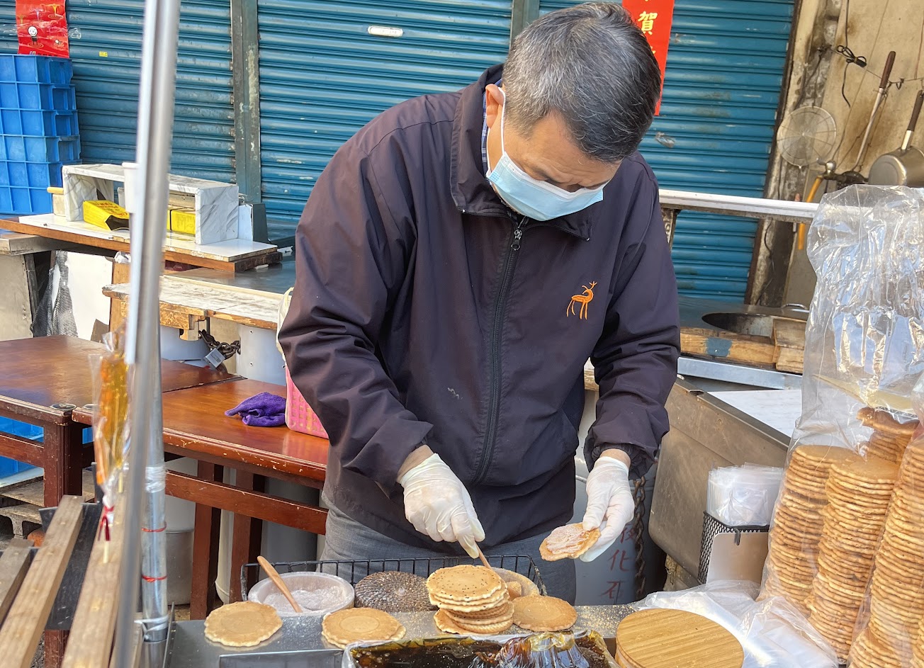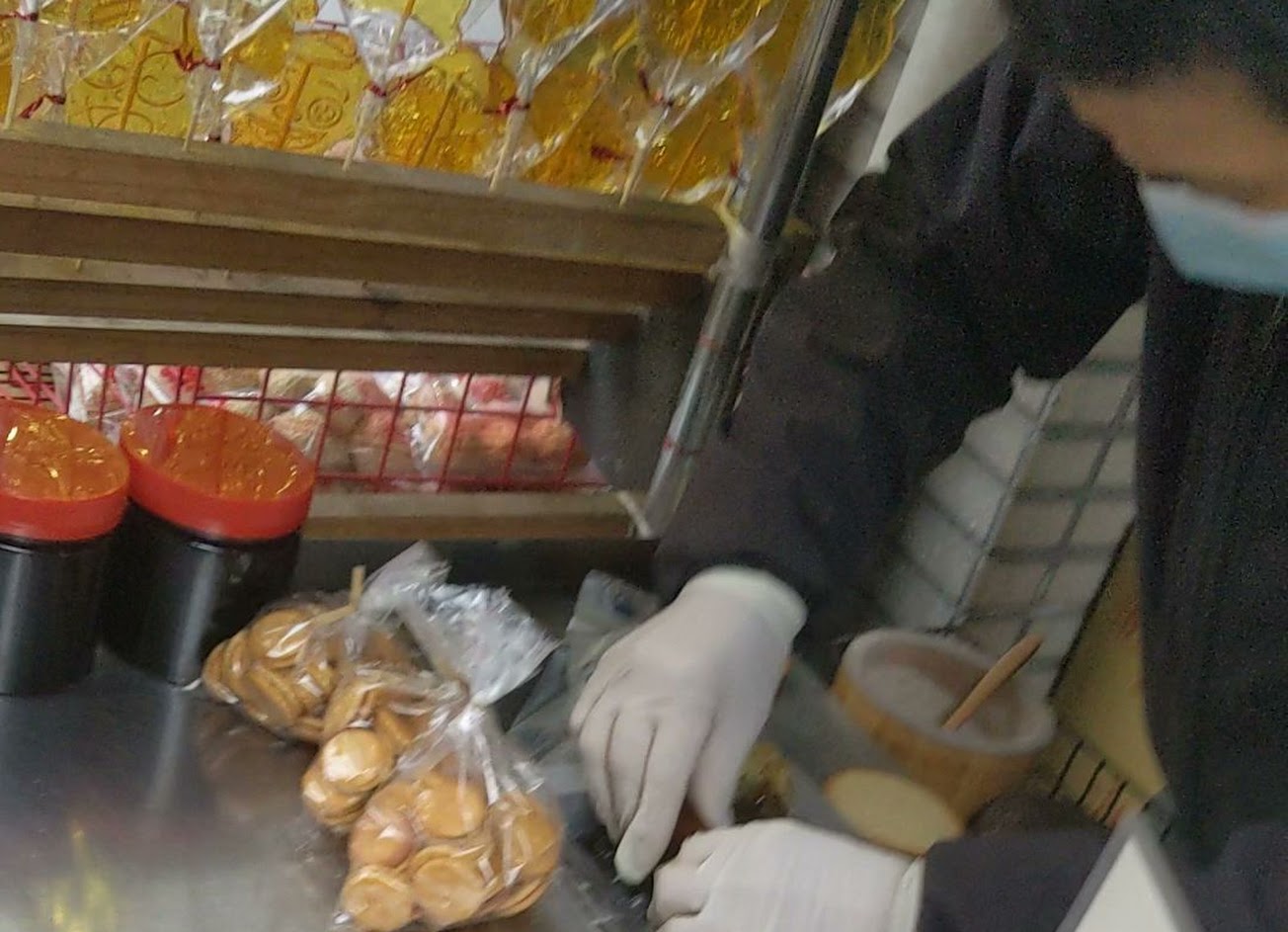 年輕老闆很認真在做餅乾,麥芽糖餅還沒入口就很香,非常好吃,小小攤子乾淨又整潔,下次還要在去