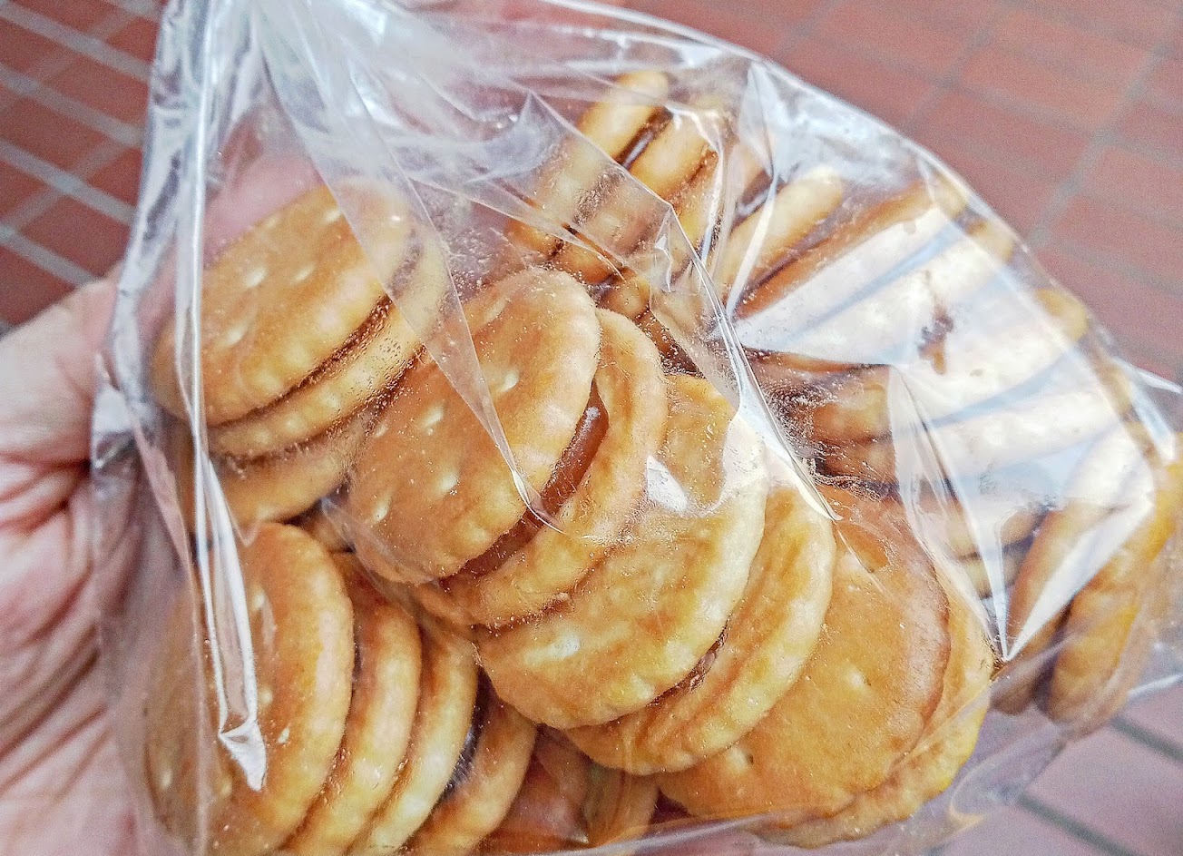一口小餅乾$60,一袋裡面有20個,鹹口味小餅乾配上麥芽糖,真的是越吃越唰嘴,好吃!