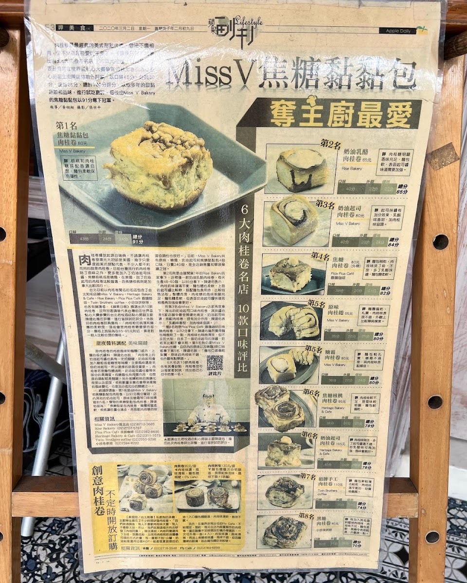 赤峰街真的變了,從打鐵街到今日文青巷道。今日來的Miss V bakery. 這是被評鑑北市八家名店(肉桂捲:核桃80元、原味65元、糖霜80元)味道真的很讚,價格也不貴,CP高,但是咖啡普普(換個豆子吧)。其實這家有分店在敦化北路,而且蛋糕及早午餐看起來都更好吃。還好非假日來,不然一定爆棚。