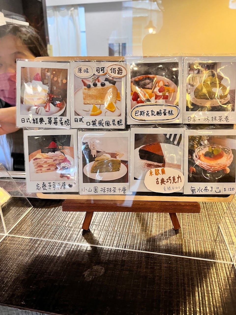 原本看到需要脫鞋進去有點小猶豫(個人不喜歡去到需要脫鞋的地方),觀望一下女性顧客居多,男性應該是因應約會而去,還好有進去,地板很乾淨,工作人員很客氣,蛋糕、鹹食照片在櫃檯,下方有飲料單。