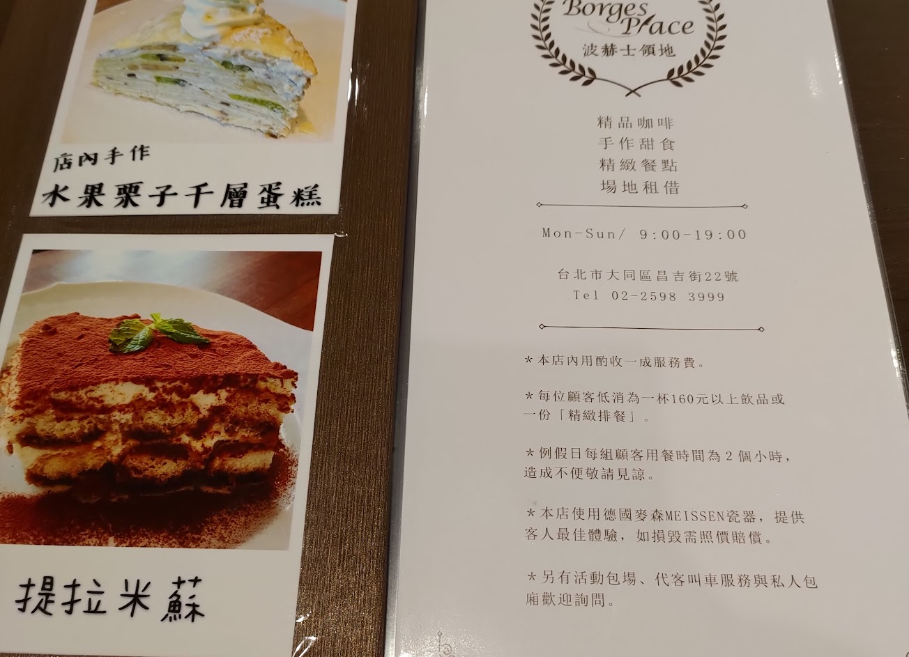 懷孕+照顧孩子2年多沒有出家門 第一次就來波赫士領地精品咖啡館 昌吉店 ?紅酒燉牛排真的很滑嫩好吃 ?可頌早午餐(肉食主義早餐盤) 可頌咬下去 中間濃香的奶油味很到味 ?義式提拉米蘇 ?然後點套餐的☕美式咖啡就已經是手沖咖啡的好喝等級了(果香 中淺培 不酸不澀) 服務 內用 餐點類型 早午餐 平均每人消費金額 $400-600 親子友善程度 備有舒適靠墊的兒童餐椅、乾淨